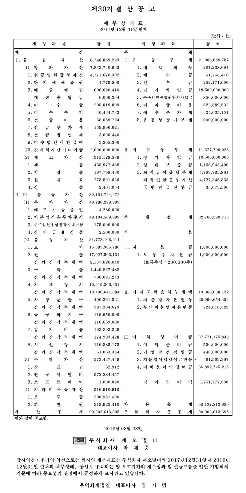 결산공고 (2017년 제30기) 페이지 정보 작성자 김주원 댓글 0건 조회 17,774회 작성일 18-03-22 23:54 본문 결산공고 (제2017년 제30기) 목록 이전글 결산공고 (2018 제31기) 다음글 결산공고 (2016년,29기) 댓글목록 댓글목록 등록된 댓글이 없습니다.