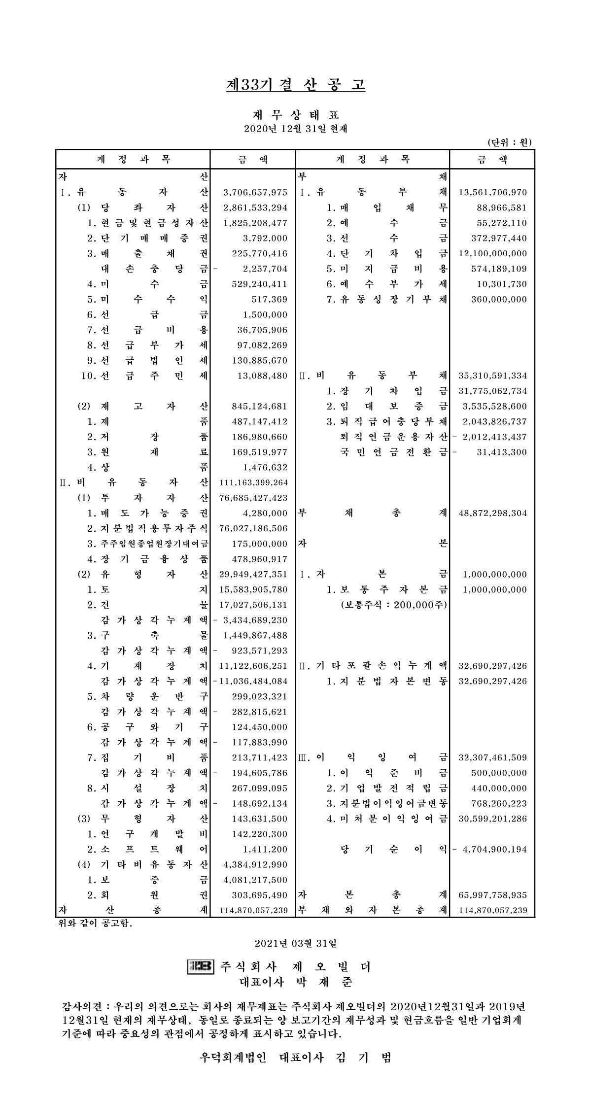 2020년도 결산공고 (제33기) 페이지 정보 작성자 김주원 댓글 0건 조회 10,310회 작성일 21-03-29 13:57 본문 2020년도 결산공고 (제33기) 목록 이전글 2021년도 결산공고 (제34기) 다음글 2019년도 결산공고(제32기) 댓글목록 댓글목록 등록된 댓글이 없습니다.