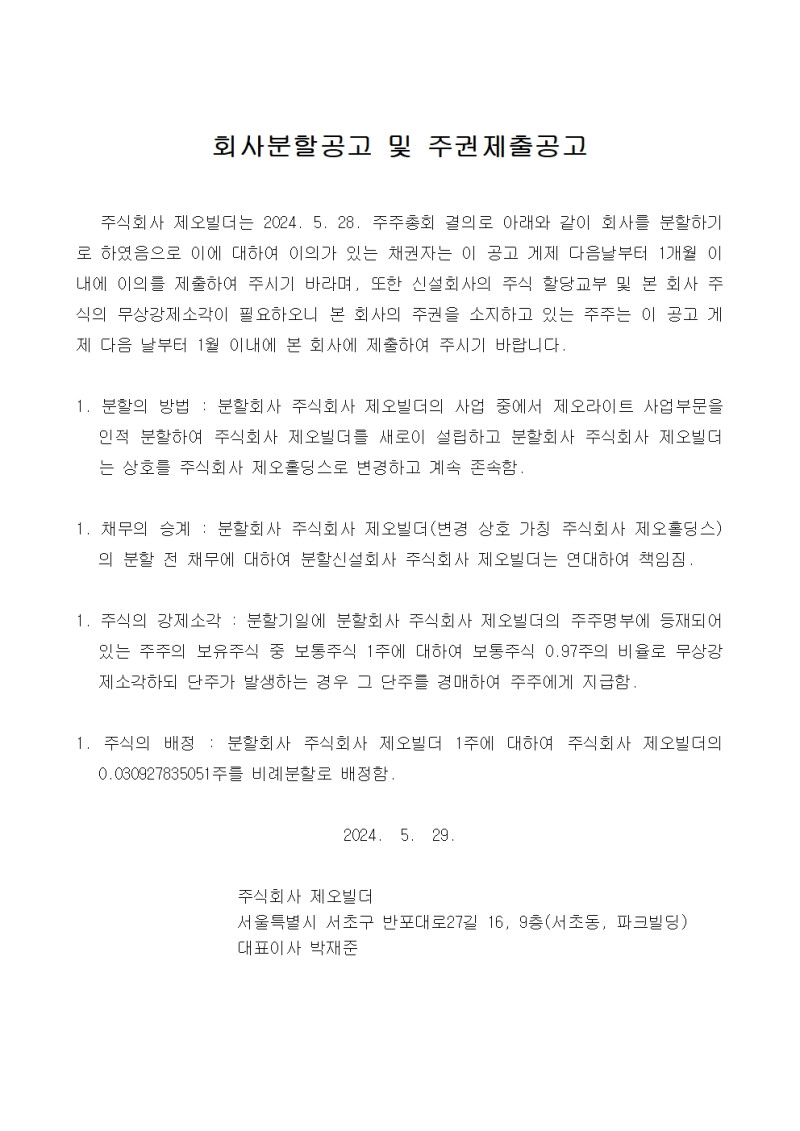 회사분할공고 및 주권제출공고 페이지 정보 작성자 김주원 댓글 0건 조회 2,056회 작성일 24-05-29 15:14 본문 . 목록 다음글 2023년도 결산공고 (제36기) 댓글목록 댓글목록 등록된 댓글이 없습니다.